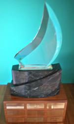 Crystal Etchells on Marble/Wood stand, presented by the US Etchells Fleet #4, Marblehead, MA for the winner of the Senior (recipient skipper must be at least 60 years old) division.